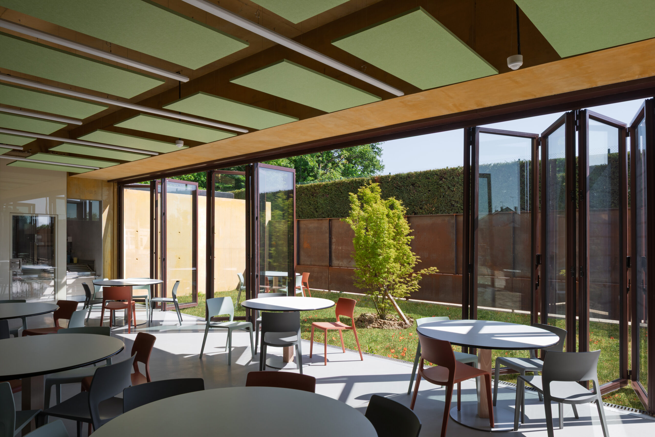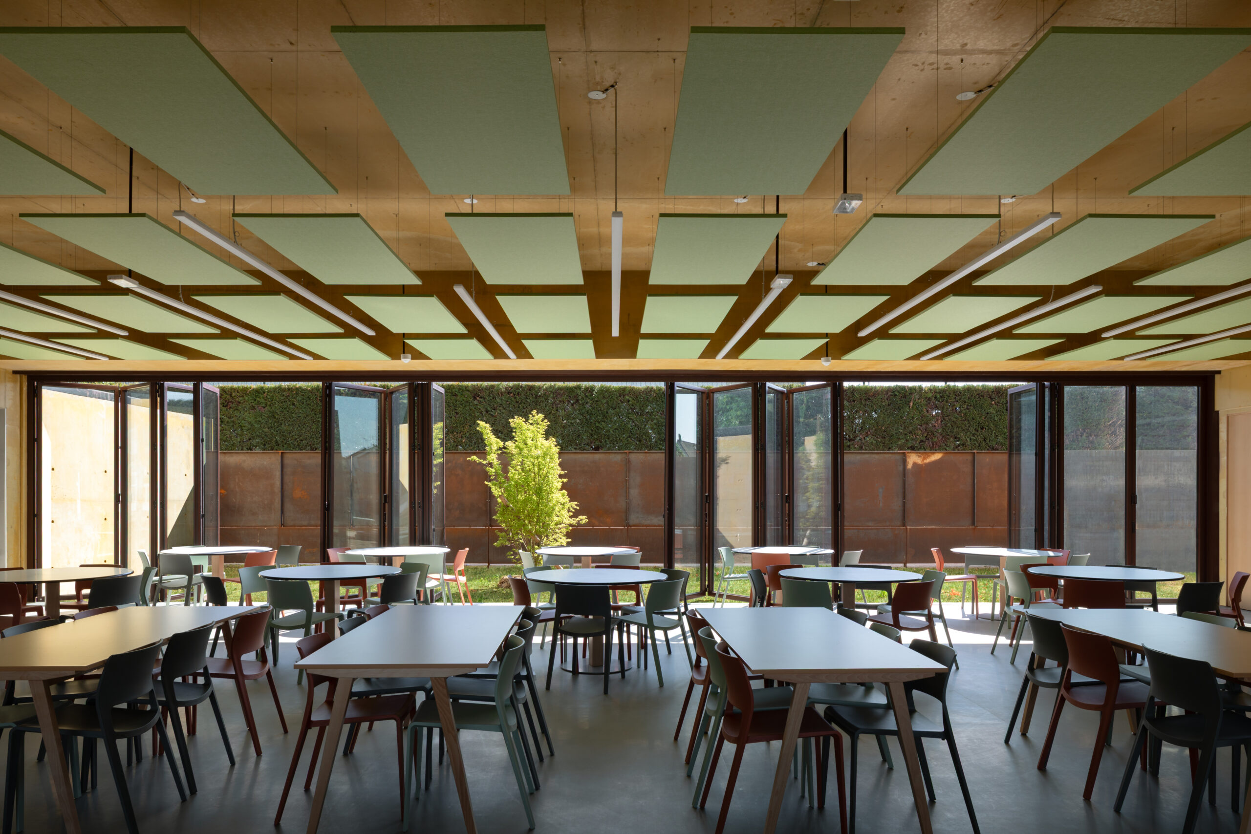 Le résultat est un bâtiment où les systèmes de fermeture ne sont pas des murs, mais des liens qui connectent les espaces et font entrer la nature et la lumière.